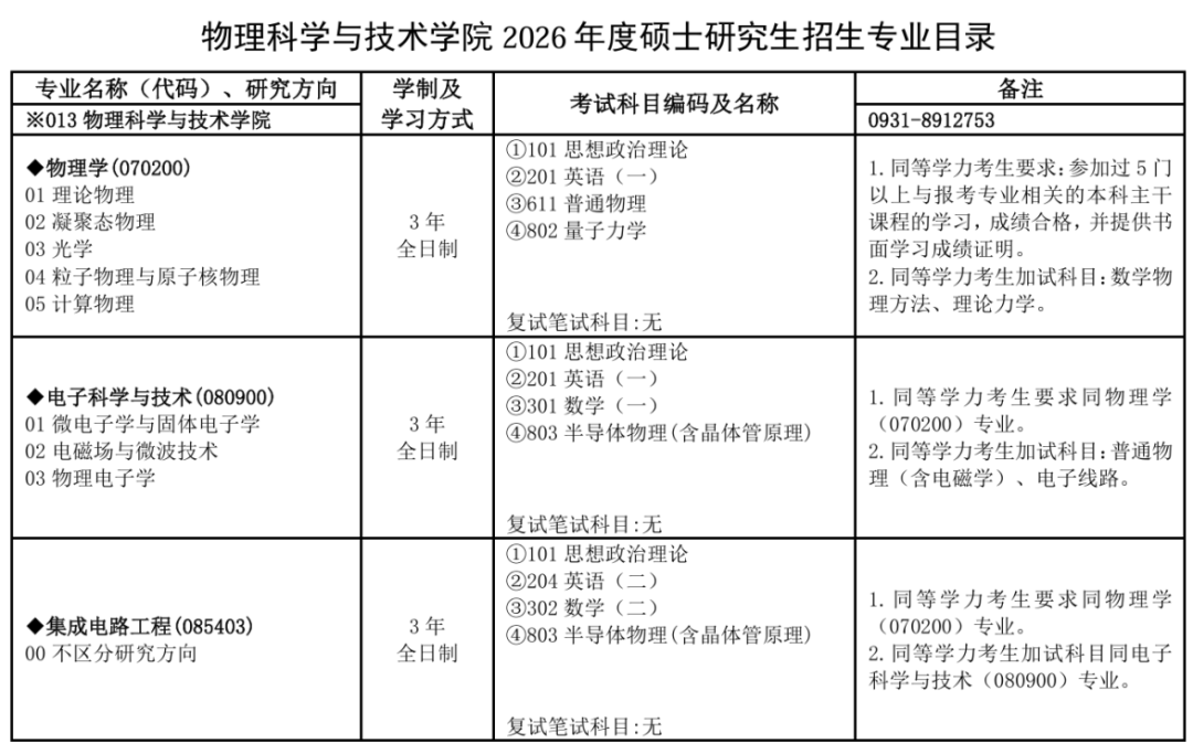 兰州大学物理科学与技术学院、化学化工学院等多个学院,明确表示“复试笔试科目:无”。