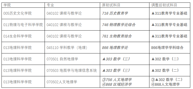 注:1. 加“▲”者为全国统一命题科目,其考试大纲由教育部教育考试院发布;2. 调整后的初试自命题科目相关考试大纲见附件(陆续发布)。