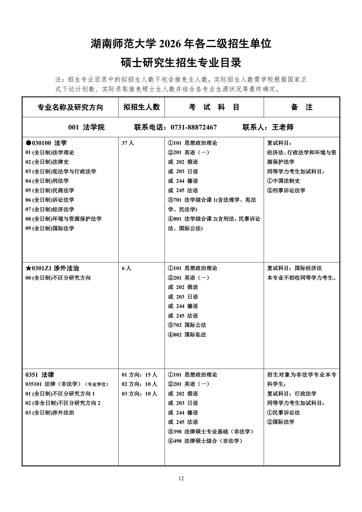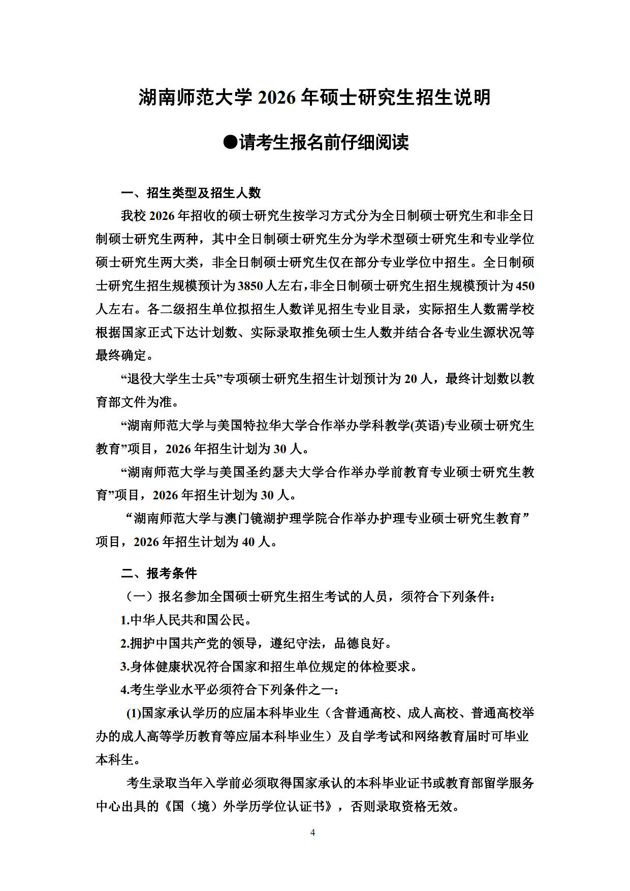 2026年湖南师范大学硕士研究生招生说明及专业目录