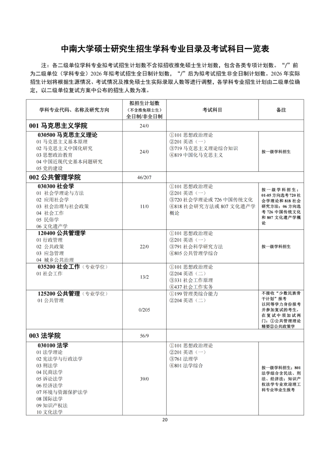 《中南大学硕士研究生招生学科专业目录及考试科目一览表》中的拟招生人数为2026年各二级单位各学科专业拟考试招生计划数(不含拟招收推免硕士生计划)。我校2026年将继续扩大推免生的接收规模,实际招生计划将根据生源情况、考试情况及推免生实际录取人数等进行调整,各学科专业招生计划由二级单位确定,以二级单位复试方案中公布的招生人数为准。