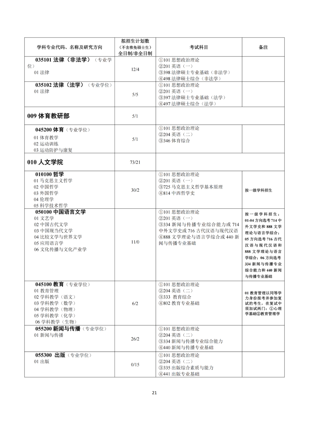 招收全日制、非全日制的学科专业:哲学[010100]、物理学[070200]、化学[070300]、生物学[071000]、临床医学[1002]、口腔医学[1003]、管理科学与工程[120100]、工商管理学[120200]:法律(非法学)[035101]、法律(法学)[035102]、社会工作[035200]、教育[045100]、体育[045200]、翻译[055100]、新闻与传播[055200]、建筑[085100]、城乡规划[085300]、电子信息[085400]、机械[085500]、材料与化工[085600]、资源与环境[085700]、能源动力[085800]、土木水利[085900]、生物与医药[086000]、交通运输[086100]、公共卫生[105300]、护理[105400]、会计[125300]、图书情报[125500]、设计[135700]: