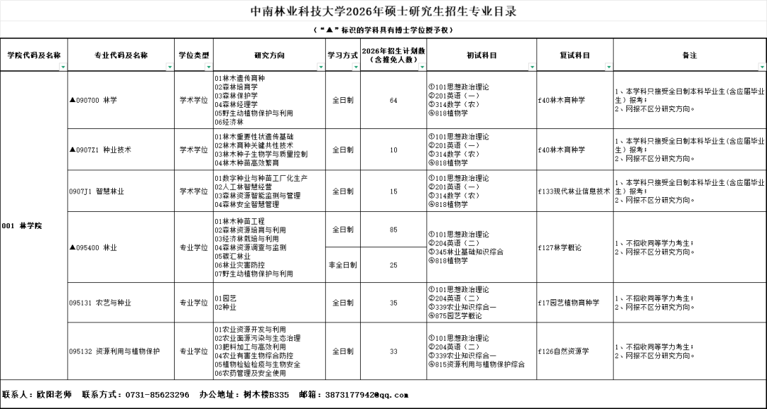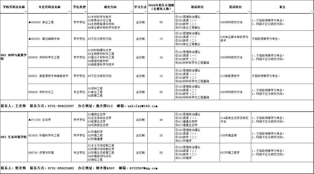 中南林业科技大学2026年计划招收硕士研究生1900人左右,其中全日制1700人左右,非全日制专业学位硕士研究生200人左右。最终招收人数以教育部实际下达的招生计划为准。
