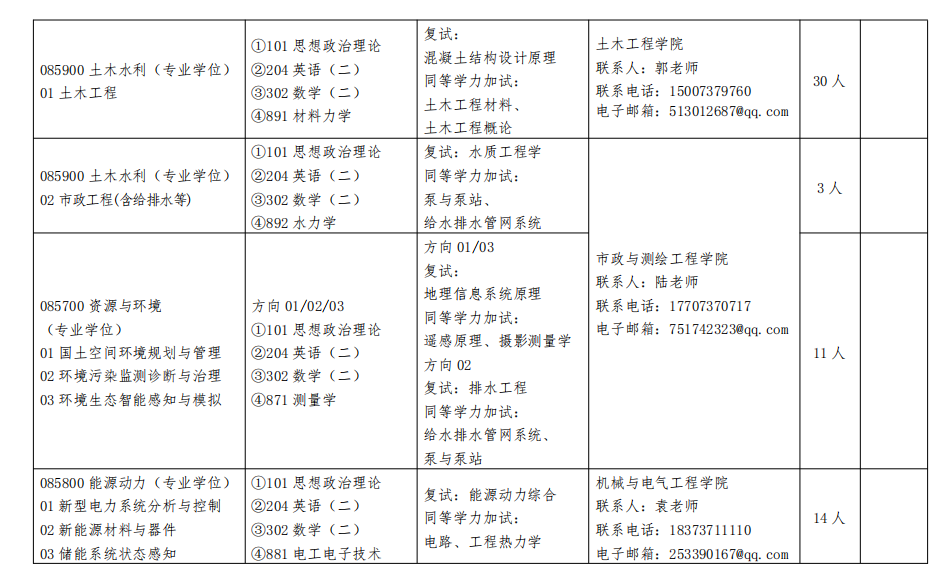 (二)专业学位硕士研究生招生专业:资源与环境、土木水利、工程管理、电子信息、材料与化工、国际中文教育、能源动力、教育、设计、音乐。