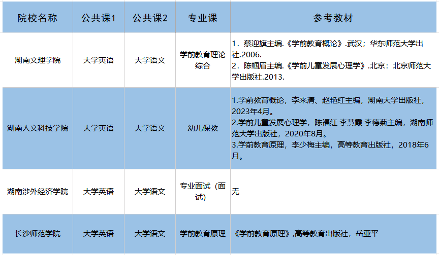 2、湖南文理学院、长沙师范学院:专业综合考学前教育理论综合,侧重理论知识积累;