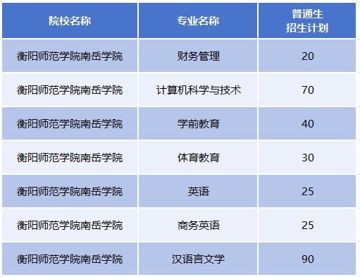 2025年衡阳师范学院南岳学院招生计划