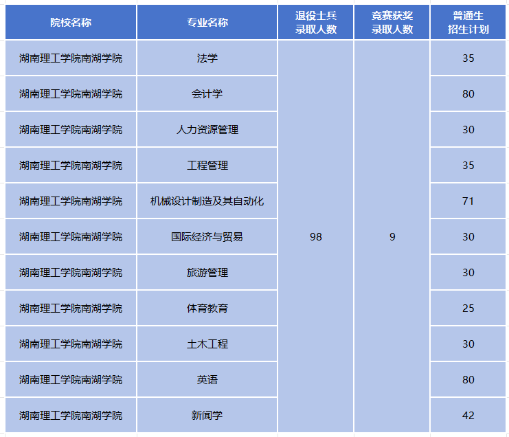 2025年,退役士兵免试录取98人,竞赛获奖免试录取9人,