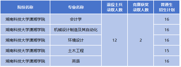 25年退役士兵免试录取12人,竞赛获奖免试录取2人;