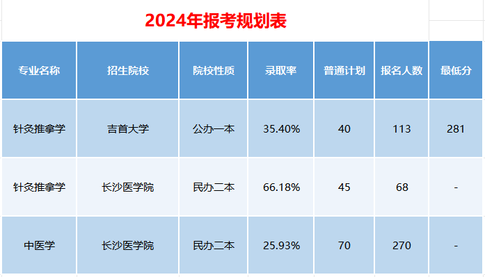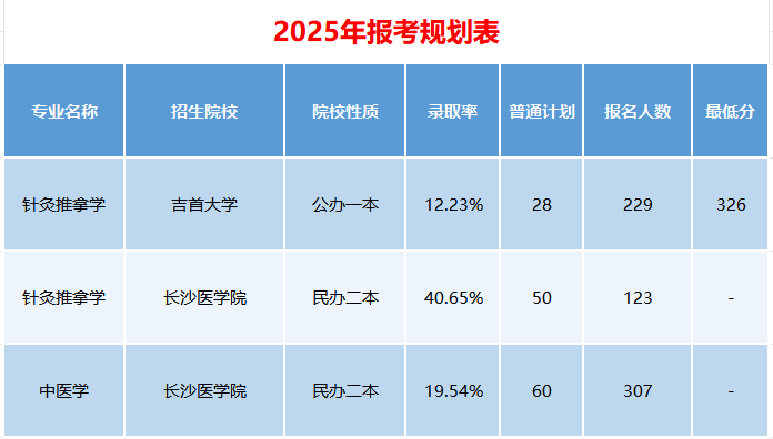 求稳优先:公共课波动大?选长沙医学院针灸推拿(扩招 5 人,虽录取率降,但名额更多);