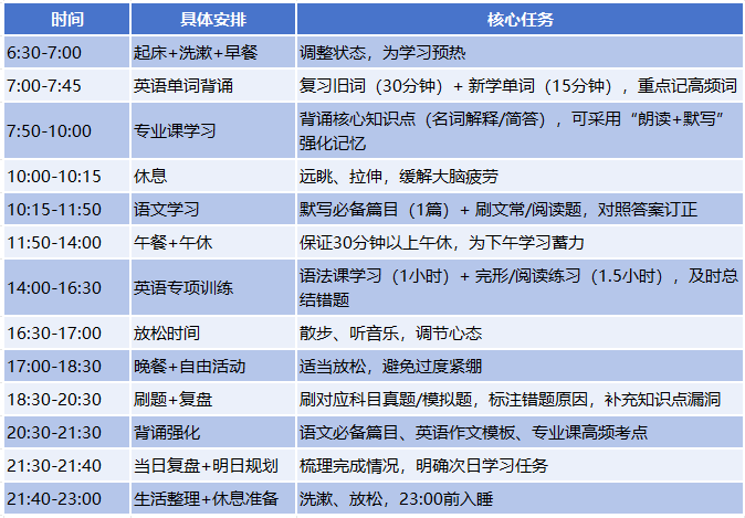 距离湖南统招专升本考试仅剩124天,基础薄弱、备考迷茫、时间紧张?别慌!这份整合了多位上岸学长学姐实战经验的规划表,从每日作息到分阶段周计划,覆盖语文、英语、专业课全科目,帮你高效利用剩余时间,实现极限逆袭!