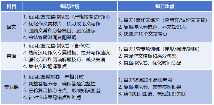 第三阶段:冲刺模考期(第9-14周,共42天)