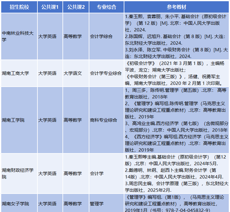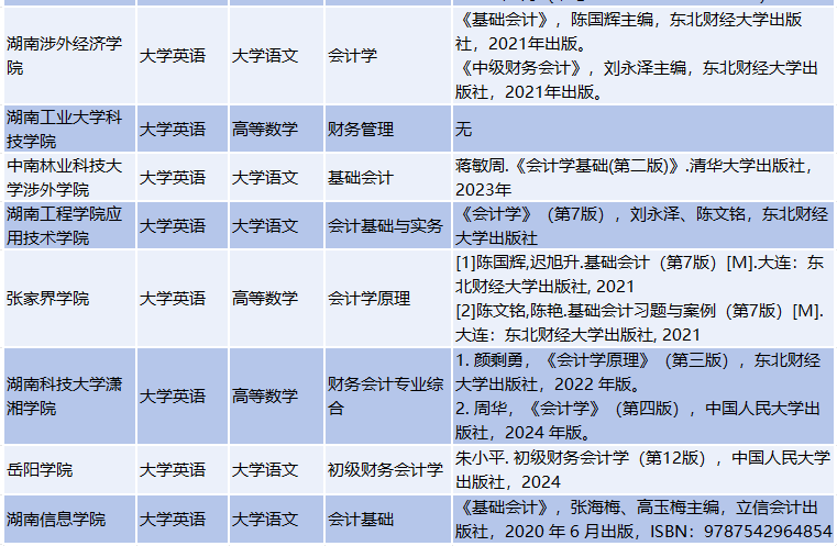 特点:侧重逻辑思维和计算能力,适合数学基础好的理科生或不怕数学的考生。如中南林业科技大学、湖南财政经济学院、湖南女子学院、湖南工学院等。